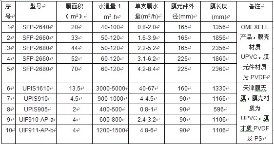 說明:UPIS為普通型膜,SFP、UIF9為抗污染膜。